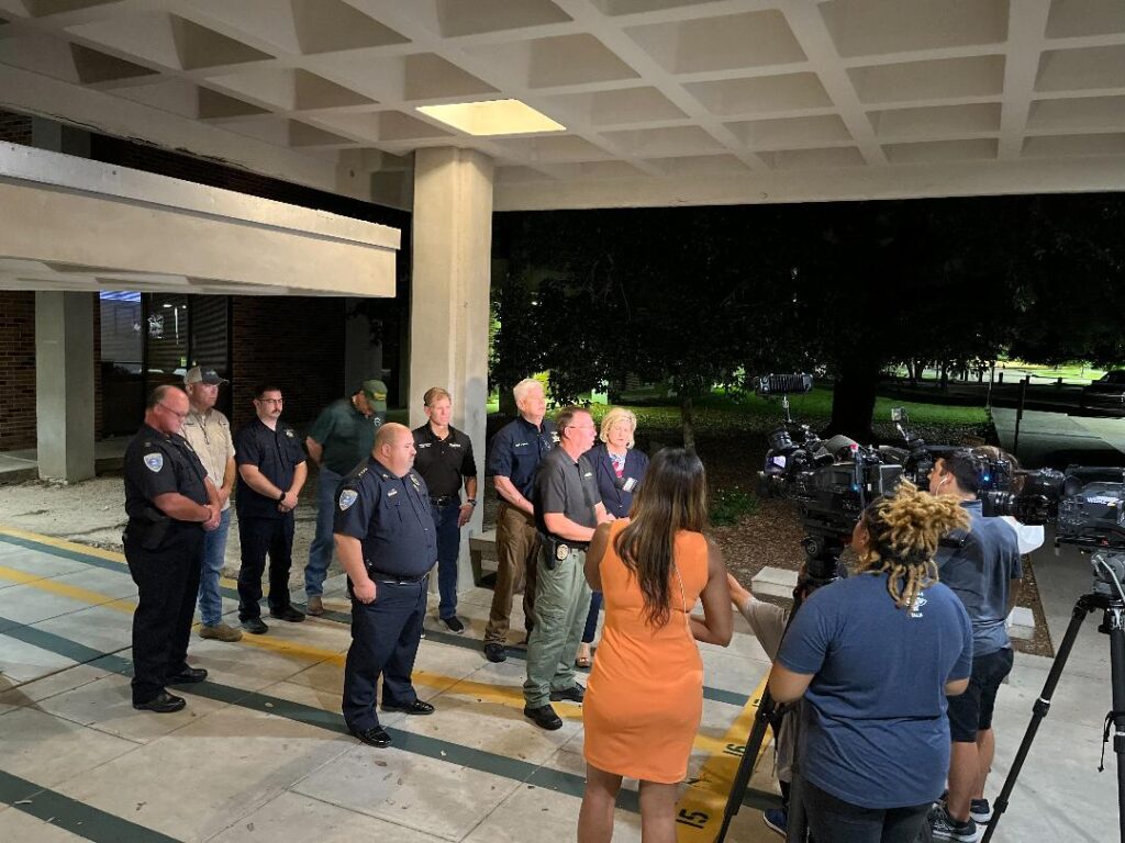 On hand for the initial press conference at the Southeastern’s Lab School were Hammond Police Chief Edwin Bergeron, TPSO Chief Deputy Jimmy Travis, Tangipahoa Schools Superintendent Melissa Stilley, and others.