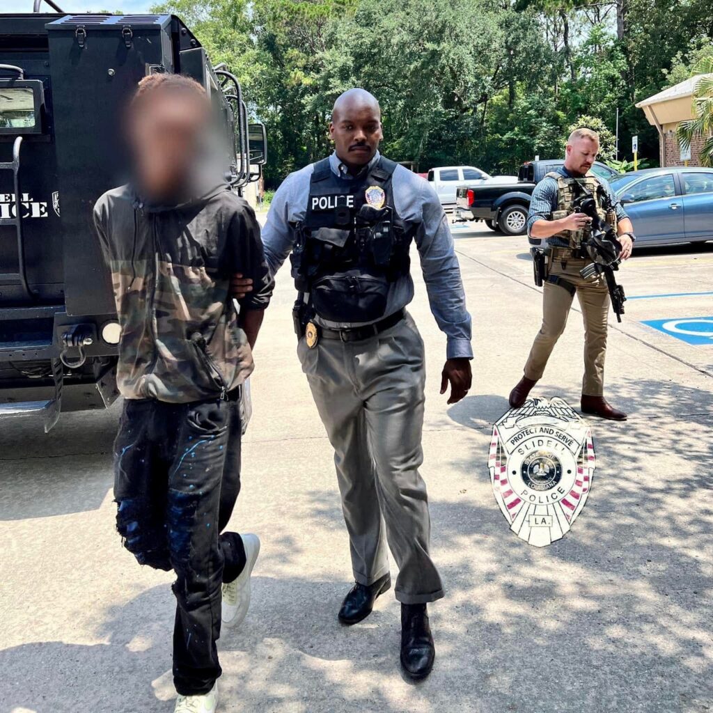 Shortly before 11am, a Slidell Police detective located the vehicle near the rear of John Slidell Park. Several Slidell Police tactical officers arrived and were able to take five teenagers into custody, without incident. The teens were also in possession of three (3) firearms.