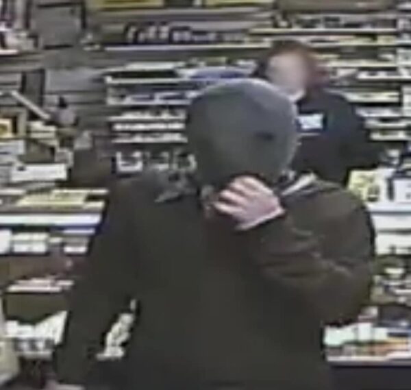 Two unidentified males wearing masks and armed with a machete and a knife entered the store and demanded money and products.