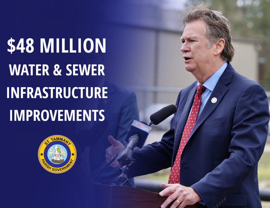 Yesterday Parish President Mike Cooper announced a $48 million investment in water and sewer infrastructure in St. Tammany Parish, utilizing federal American Rescue Plan Act (ARPA) funding allocated to the Parish and State.