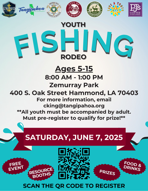 For more information or to pre-register for this event, email cking@tangipahoa.org or check out the Youth Fishing Rodeo event page on Facebook, at https://www.facebook.com/events/1679098619414725.