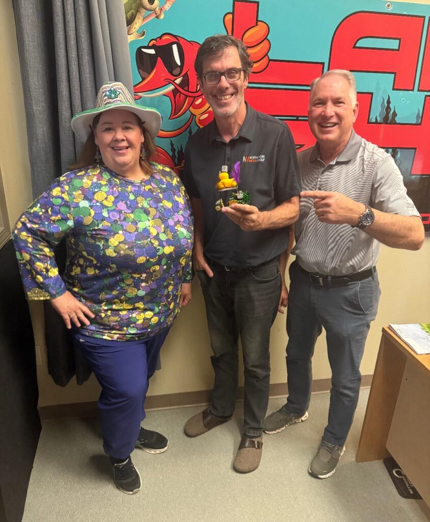 Larry and Amy came in from the Krewe of Bogue Falaya. This year’s parade in downtown Covington will be as big as ever.