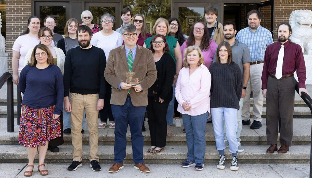 Eric Johnson, David Susser, and Sue Gutierrez from the Sims Library came to promote the Friends of Sims Library and their Marjorie Morrison Memorial Member’s Tea.