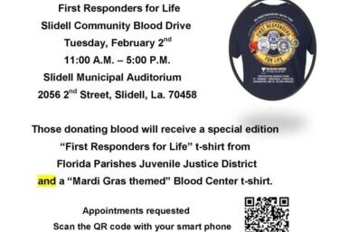 The First Responders for Life Slidell Community Blood Drive will be Tuesday,…